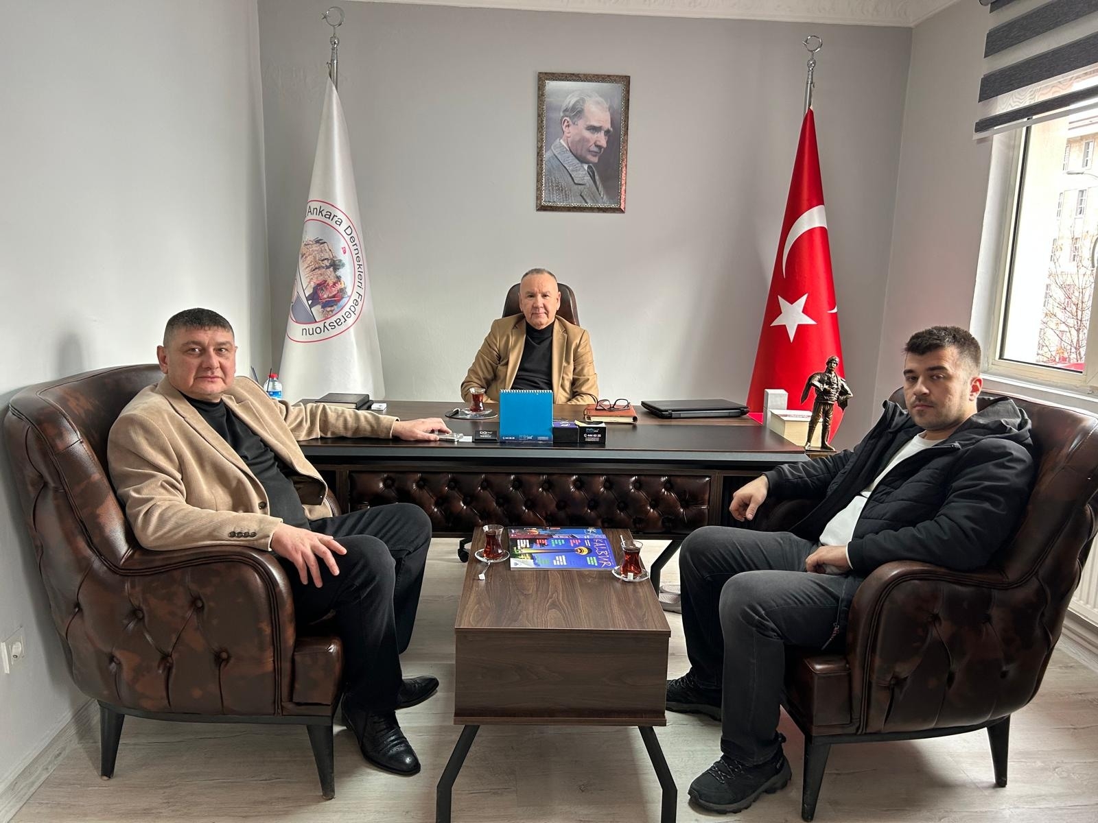 Meşhur Kavurmacı Sayın Suat Duman Beyefendinin Federasyonumuzu Ziyaretleri. Federasyon başkanımız kendilerine federasyon yönetim kurulu üyeleri ve şahsı adına plaket takdiminde bulundu.